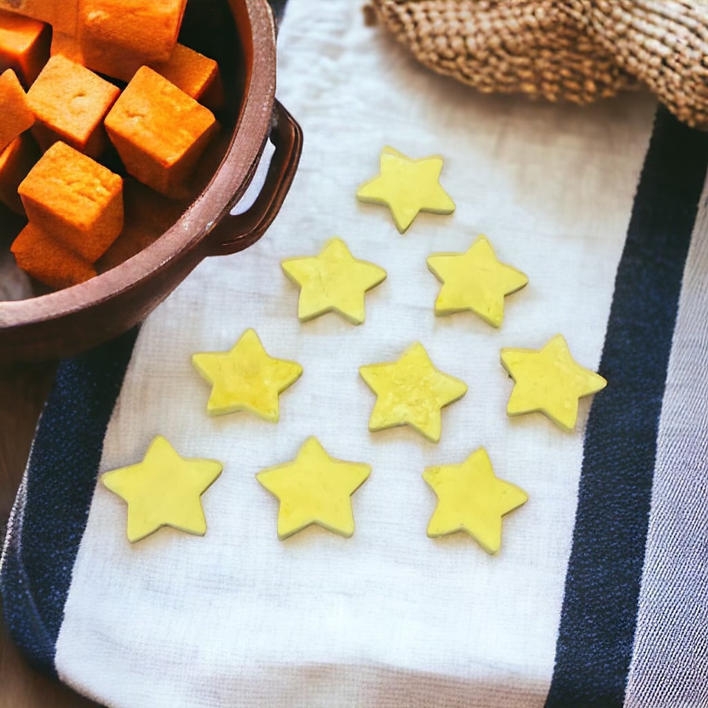 Introducing our Sweet Potato Dog Treats! We’ve carefully crafted a blend of nutritious ingredients to support your dog’s health and delight their taste buds. Our treats harmonize the natural sweetness of sweet potatoes with the richness of lard, the healthful benefits of olive oil, and the gentle, gluten-free touch of corn flour.